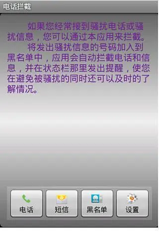 如果您经常接到骚扰电话或骚扰信息,您可以通过本应用来拦截。 将发出骚扰信息的号码加入到黑名单中,应用会自动拦截电话和信息,并在状态栏那里发出提醒,使您在避免被骚扰的同时还可以及时的了解情况。 每次接到电话,程序会自动提醒您是否加入黑名单。 更新内容: 修复部分小错误,提升整体稳定性。