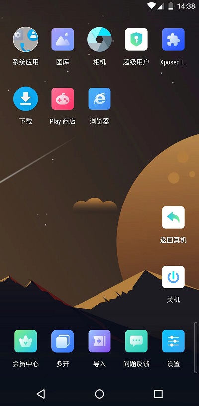3、在桌面上可以看到有【返回真机】【关机】选项,可以根据自己的需求去使用,返回真机则是不关闭虚拟机,还可以轻松的切换回来,不需要加载;