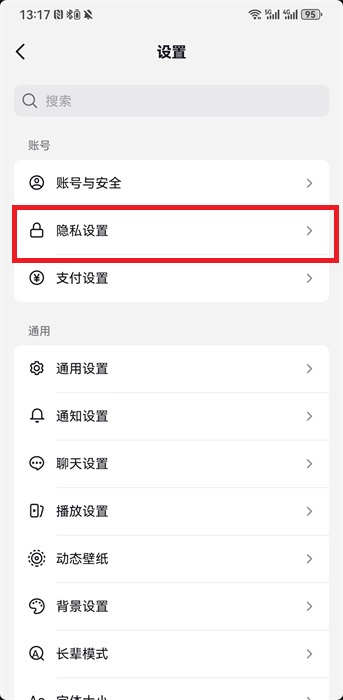 3、找到【隐私设置】给我们的账号增加一个隐私的权限;