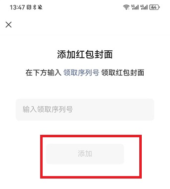 6、最后在序列号界面中,只需要复制进去我们的序列号,就可以点击【添加】获得红包封面。