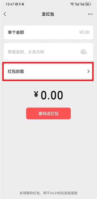4、红包界面中,需要点击下方的【红包封面】去进行填写序列号;