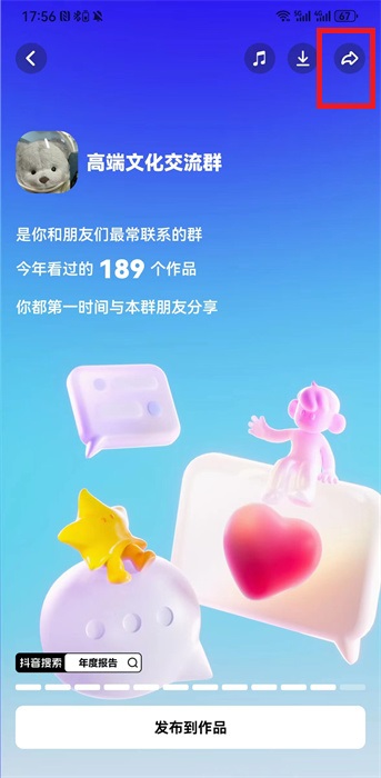 5、你也可以选择把年度报告转发给自己的好友观看,只需要在报告中点击右上角的【转发箭头】就可以转发给自己好友;