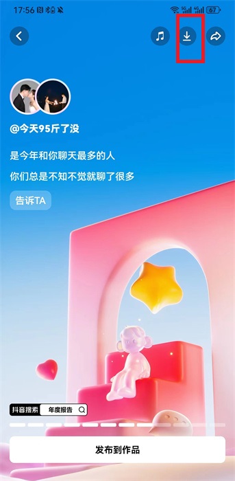 4、点击页面中右上角的【下载】图标按钮,就可以保存当前页面的年度报告,如果不想发布年度报告为作品,还想保留下来的,可以点击保存图片,直接保存到手机上;