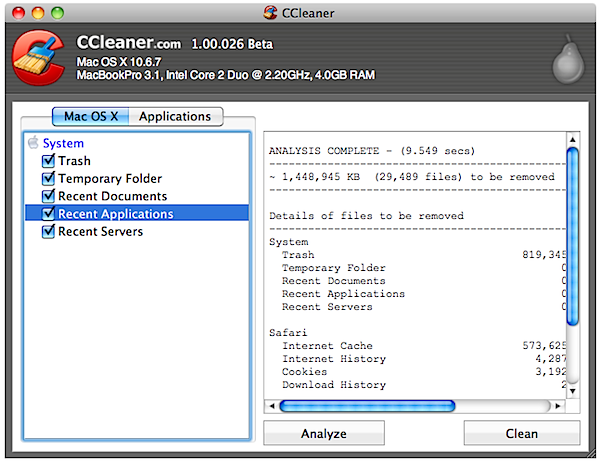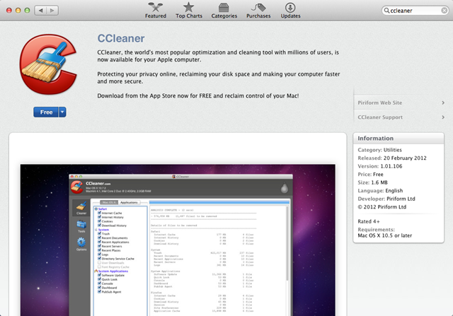 CCleaner for Mac今天更新到1.04.148,最大的改变是开始支持10.8版本的OS X Mountain Lion,同时也为该版本中的Gatekeeper特性提供了支持。