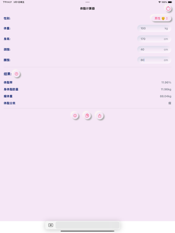 体脂计算器: 专业的身体脂肪量 & 体脂率计算健康健美9.8MB