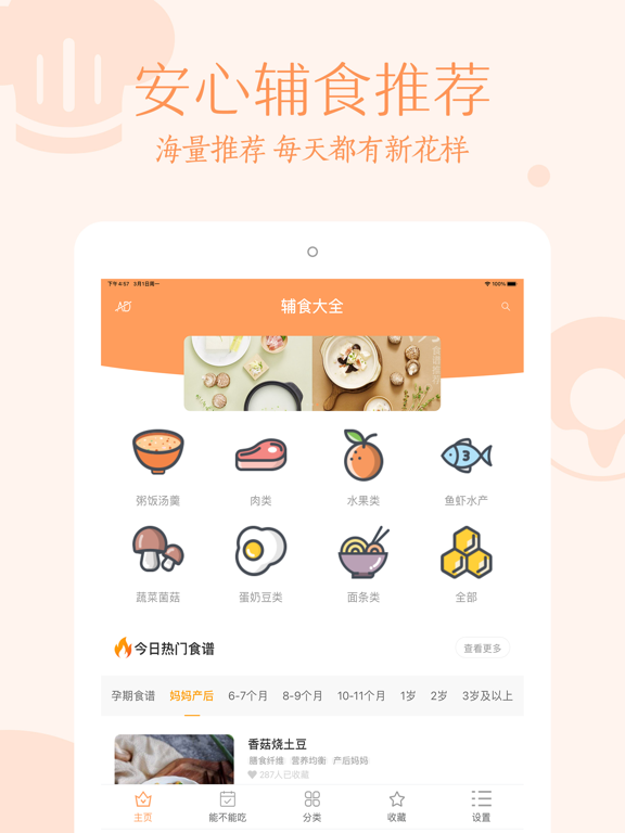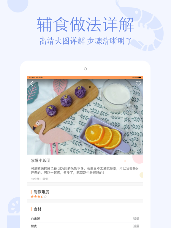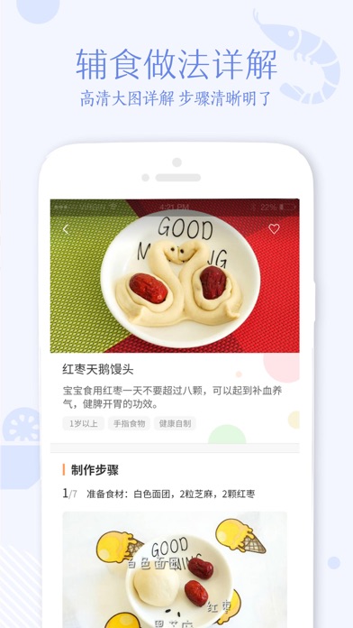宝宝健康成长是父母最为关心的事情,0-3岁是孩子生长发育最快的年龄段,这一时期孩子的营养摄取,直接决定了大脑发育和免疫机制的建立,以及日后的身体健康,宝宝营养在这个时期尤为关键。 宝宝辅食软件为广大新手爸妈全面提供宝宝特殊成长时期所需要的营养,让宝宝的饮食营养均衡,宝宝健康成长。 特色功能: 1,根据宝宝不同时期,提供对应食谱,主要分为婴儿、幼儿、 儿童三大特殊成长时期; 2,食谱内容全面,食物的营养介绍,食材配比,制作步骤都非常详细,一步步的教您如何制作营养辅食,一学就会; 3,贴心的浏览记录,看过的菜谱都在这里,很贴心; 4,支持食谱收藏功能,适合宝宝的食物就为宝宝留下来吧; 5,界面简洁精致,使用简单,新手妈妈们必备; 6,详细划分各种不同类型的食谱,补钙铁锌、DHA、维生素、免疫力、五谷杂粮、肉类、水果类、鱼虾水产、蔬菜菌菇、蛋奶豆类等等不同类型的辅食食谱。让您的宝宝健康成长。