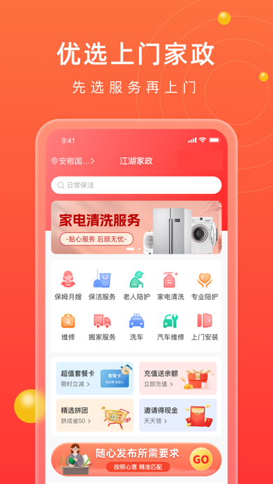 江湖家政是一套可以提供上门家政、上门维修、上门洗车、上门搬家等服务为一体的o2o家政平台解决方案。它能够与微信对接、拥有小程序/H5端,并提供用户端/商户端/服务端app等,可以帮助创业者在不需要相关技术人员及大量资金投入的情况下,就能够轻松搭建并运营家政服务平台。 【产品特色】 江湖家政能够有效解决传统家政的重资产运营方式、服务效率不佳、服务质量不好管控、经营模式单一等问题痛点,为传统家政打造便捷的“互联网+”模式,帮助家政行业公司快速转型,O2O平台创业者轻松搭建平台、运营项目。 【功能介绍】 江湖家政app是江湖家政系统用户端的app端,江湖家政app涵盖了目前江湖家政的主要功能,用户可以app上选择服务项目/服务人员,然后下单,还可以直接在平台商城购买服务所需的各种周边商品。江湖家政平台主要是打造“先选服务再上门”的模式,用户可以在平台筛选服务项目或者服务人员,然后再由服务人员上门履约。入驻平台的企业和平台管理方可以在线上商家自己的产品和服务,签约合作服务人员,然后再通过平台提供的各种运营功能,提供各种服务及产品的销售,最终实现平台或企业成功经营。 江湖家政系统不仅仅是面向家政行业,还适用整个上门O2O行业,如上门家政、上门做饭、上门维修等多种服务行业,既可以单一经营服务,也可以做一个综合上门服务平台。传统家政公司可以直接拿来搭建自己互联网终端平台,快速实现“互联网+”化,开拓线上业务,个人创业者也可以用来做O2O上门服务平台类的项目。源码完善、体系完整,提供SaaS部署、独立部署等多种方式,让企业和个人可以根据自身情况,以较低成本快速实现创业起步。 【产品优势】 体系完善:多年更新迭代,整个系统体系完善。 快捷方便:使用系统可以快速搭建O2O上门平台。 成本可控:支持SaaS托管、独立部署,平台搭建成本可控。 【商务合作】 电话:18256073326 微信:18256073326